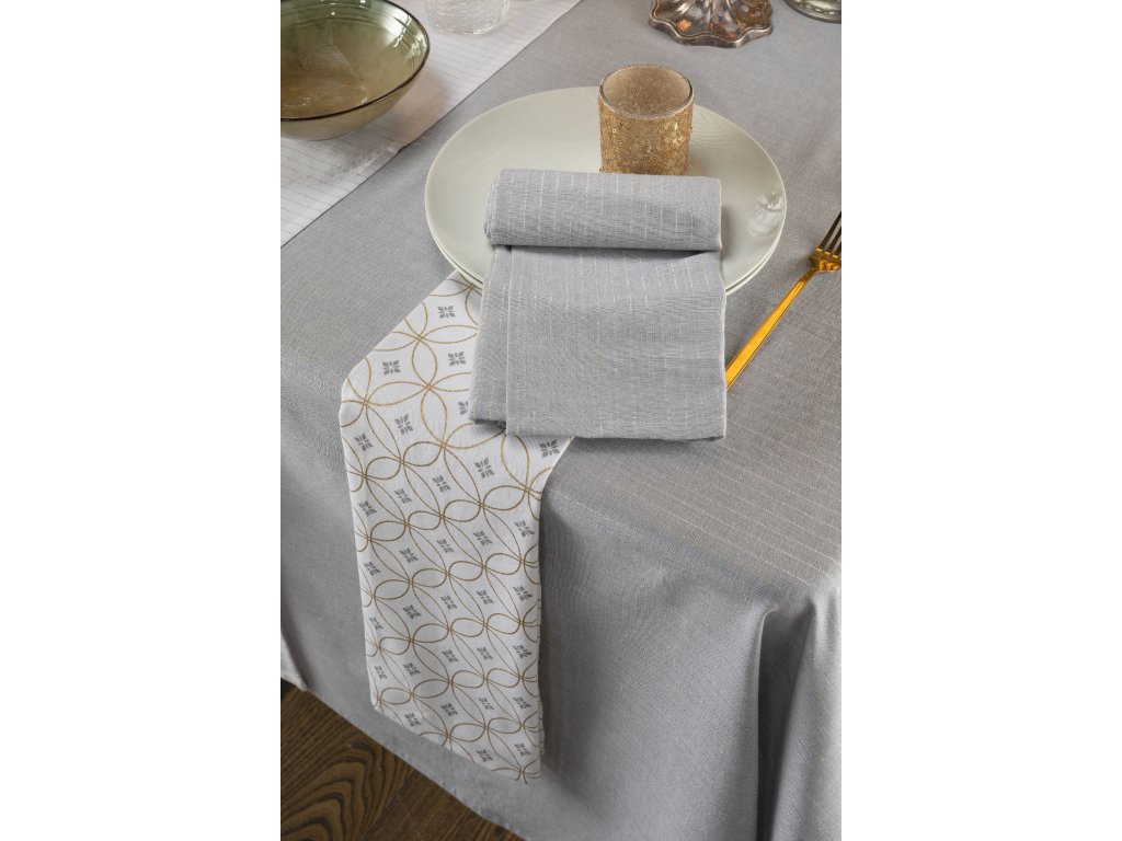 Vytvořte slavnostní atmosféru s tímto ubrusem s originálním, ale decentním motivem v odstínech šedé a bílé.