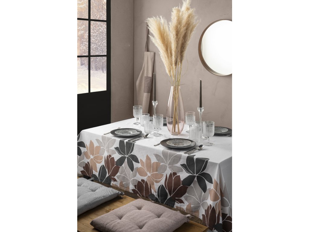 Bavlněný ubrus z kolekce TERRA se vzorem květů v přírodních odstínech.