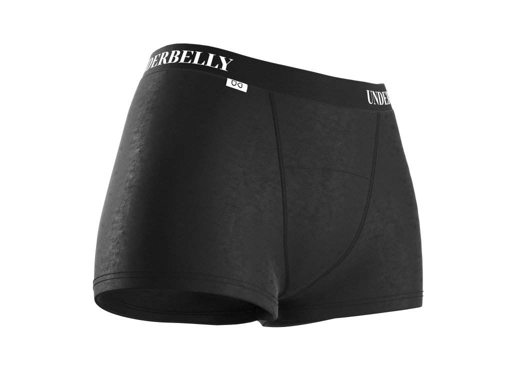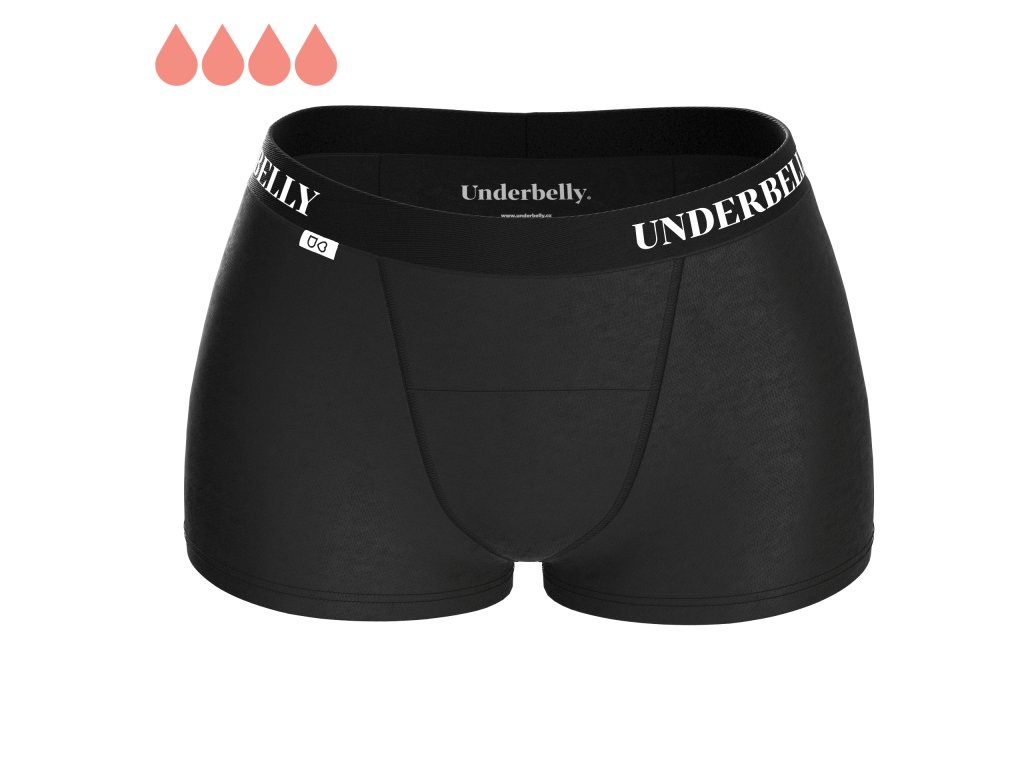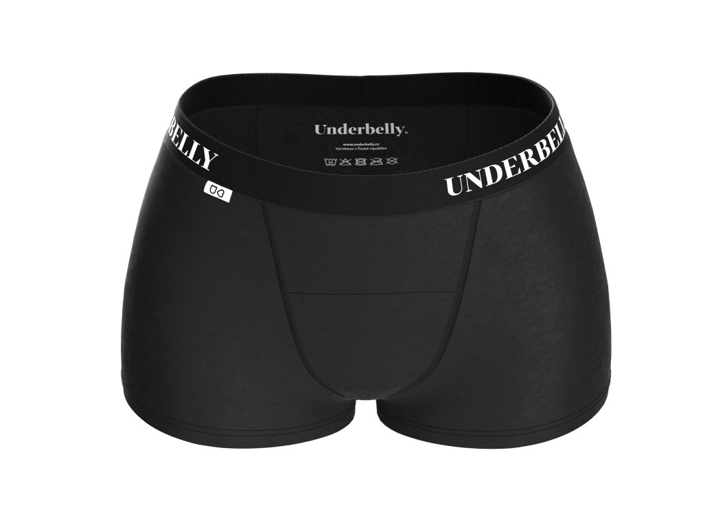 Menstruační kalhotky, které budeš milovat během těch nejintenzivnějších dní, ale hlavně nocí. Mají rozšířenou savou vrstvu tak, aby ses v nich mohla bez obav převalovat v posteli během spánku i odpočinku. Mají atraktivní a velmi lichotivý střih na způsob pánských boxerek. Kalhotky jsou dostupné ve dvou materiálových variantách: lehký a odolný mikromodal, se kterým se budeš cítit ve své kůži, nebo o něco luxusnější polyamid s dokonalou prodyšností. Vybrali jsme pro ně elegantní černou barvu s výrazným lemem a logem Underbelly.