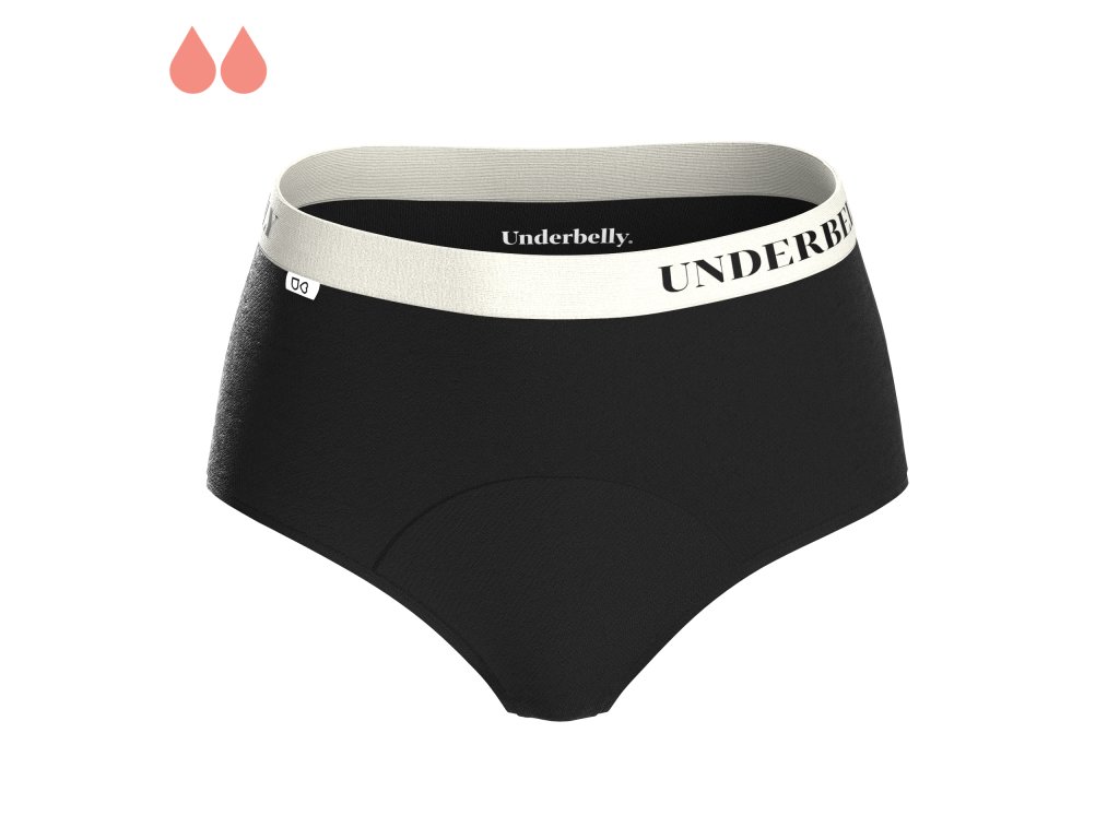 Představujeme menstruační kalhotky klasického kalhotkového střihu s vyšším pasem. Hodí se pro slabší dny menstruace, když se chceš cítit v dokonalém pohodlí. Tvarem skvěle sednou třeba pod šaty. Vybrat si můžeš ze dvou druhů materiálu: perfektně prodyšný mikromodal nebo o něco luxusnější polyamid. Tento model ti přinášíme ve dvou variantách savosti a ve dvou elegantních barevných provedeních v kombinaci s krásnými lemy s logem Underbelly.