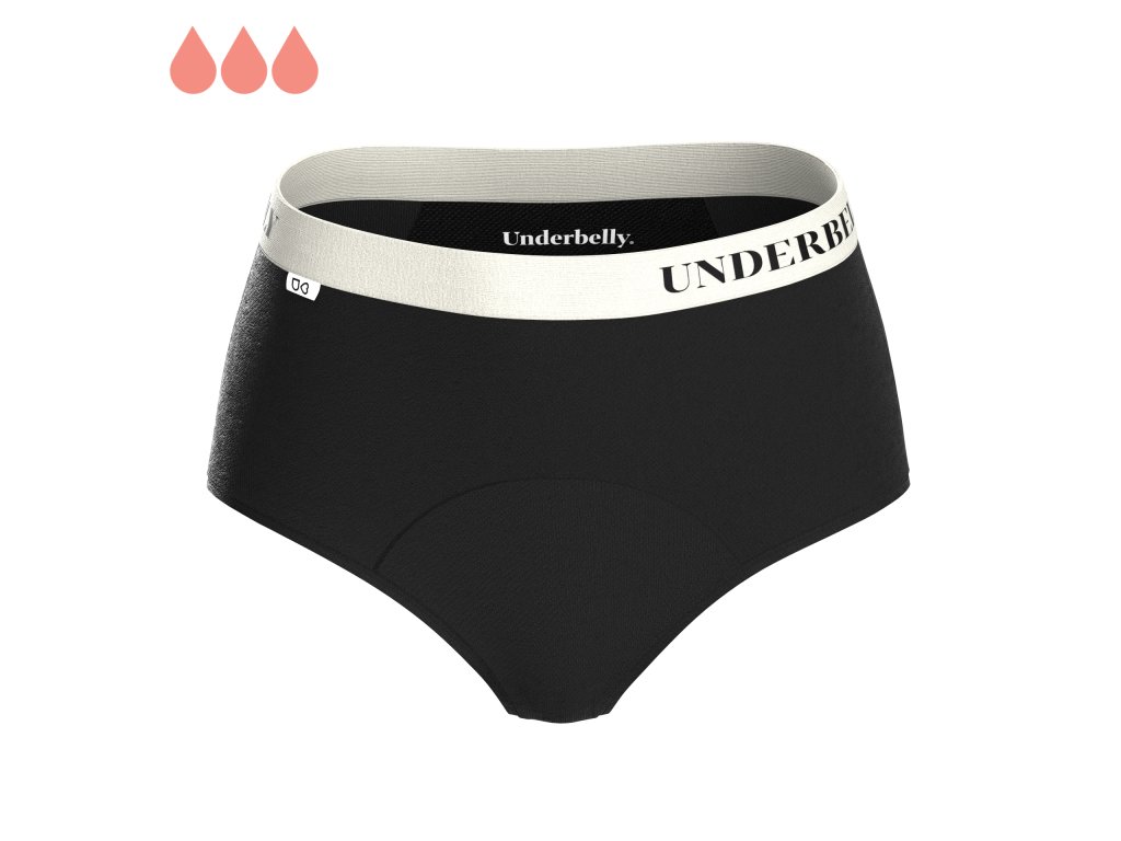 Představujeme menstruační kalhotky klasického kalhotkového střihu s vyšším pasem. Hodí se pro střední dny menstruace, když se chceš cítit v dokonalém pohodlí. Tvarem skvěle sednou třeba pod šaty. Vybrat si můžeš ze dvou druhů materiálu: perfektně prodyšný mikromodal nebo o něco luxusnější polyamid. Tento model ti přinášíme ve dvou variantách savosti a ve dvou elegantních barevných provedeních v kombinaci s krásnými lemy s logem Underbelly.