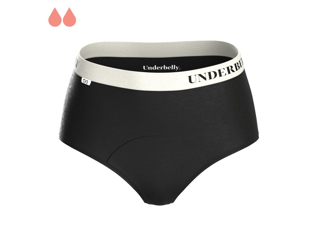 Představujeme menstruační kalhotky klasického kalhotkového střihu s vyšším pasem. Hodí se pro slabší dny menstruace, když se chceš cítit v dokonalém pohodlí. Tvarem skvěle sednou třeba pod šaty. Vybrat si můžeš ze dvou druhů materiálu: perfektně prodyšný mikromodal nebo o něco luxusnější polyamid. Tento model ti přinášíme ve dvou variantách savosti a ve dvou elegantních barevných provedeních v kombinaci s krásnými lemy s logem Underbelly.