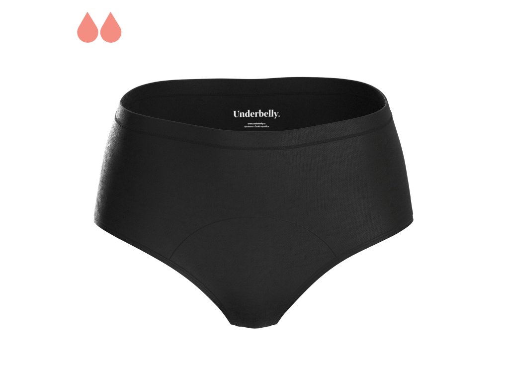 Představujeme menstruační kalhotky klasického kalhotkového střihu s vyšším pasem. Hodí se pro slabší dny menstruace, když se chceš cítit v dokonalém pohodlí. Tvarem skvěle sednou třeba pod šaty. Vybrat si můžeš ze dvou druhů materiálu: perfektně prodyšný mikromodal nebo o něco luxusnější polyamid. Tento model ti přinášíme ve dvou variantách savosti a ve dvou elegantních barevných provedeních v kombinaci s krásnými lemy s logem Underbelly.