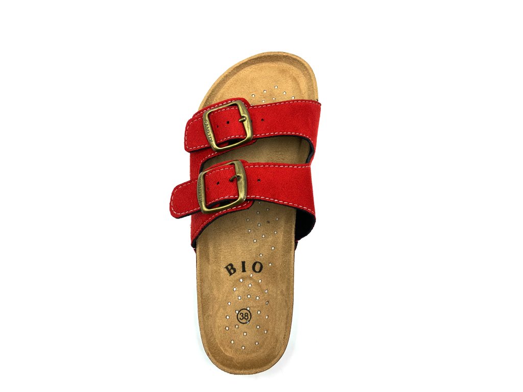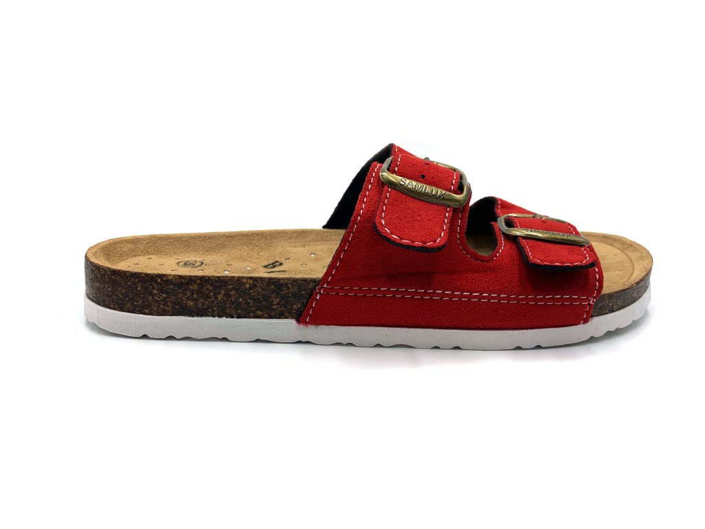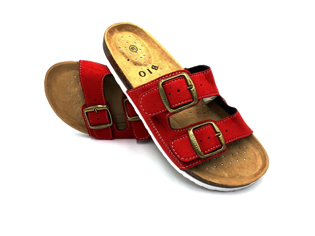 Dámské korkové pantofle s nastavitelnými koženými pásky v červené barvě