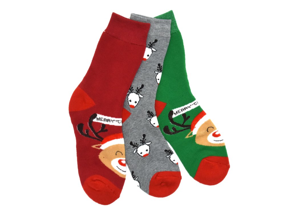 Dámské vánoční termo ponožky 3-pack - červená/šedá/zelená