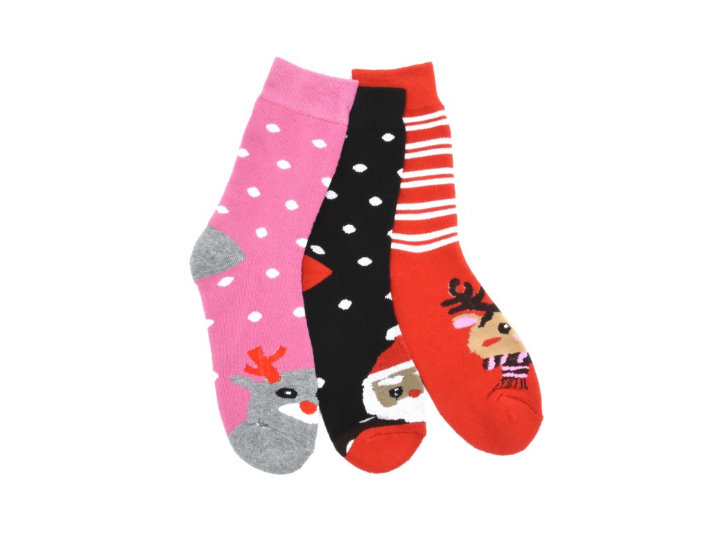 Dámské vánoční termo ponožky 3-pack - růžová/černá/červená