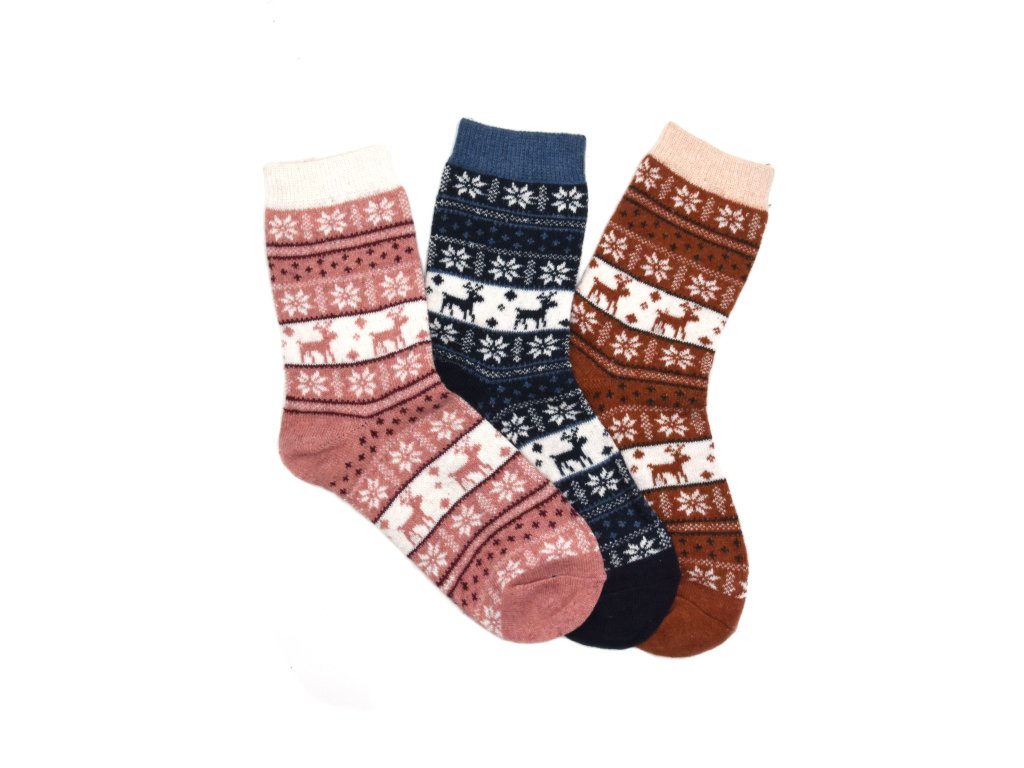 Dámské vlněné ponožky ANGORA s norským vzorem 3-pack - růžová/modrá/oranžová