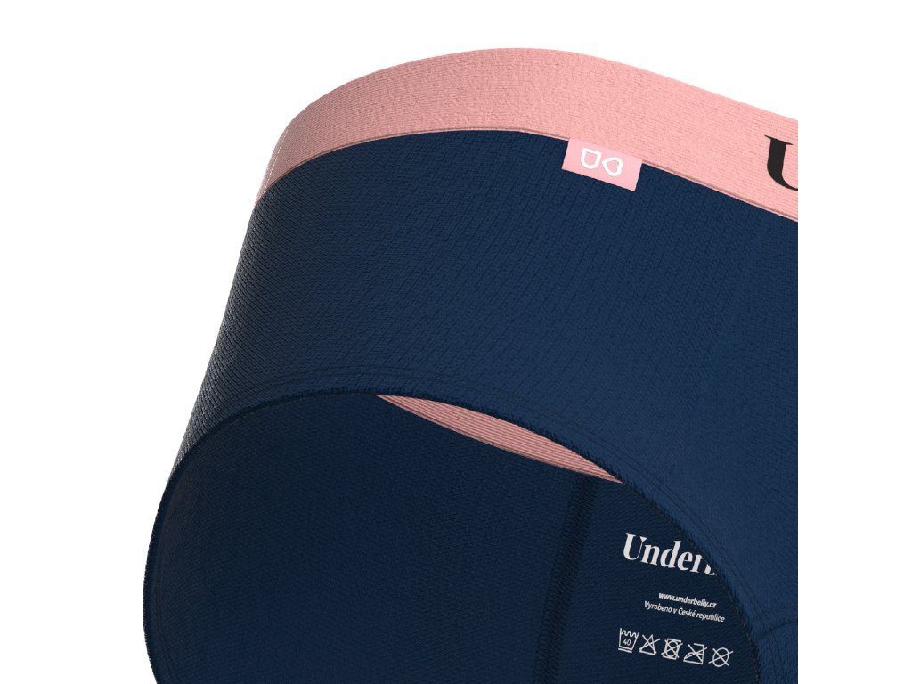 Kalhotky s nizoučkým pasem pro milovnice tohoto decentního střihu. Navrhli jsme je tak, abys mohla při slabých dnech menstruaci už docela pustit z hlavy. Kalhotky jsou tenoučké, prodyšné a padnou pod jakékoliv oblečení. Dostupné jsou ve dvou materiálových variantách - odolný a lehoučký mikromodal nebo prémiovější polyamid. S tímto modelem máš možnost si vybírat z šesti elegantních barev v rozmanitých kombinacích s luxusním lemem s logem Underbelly.