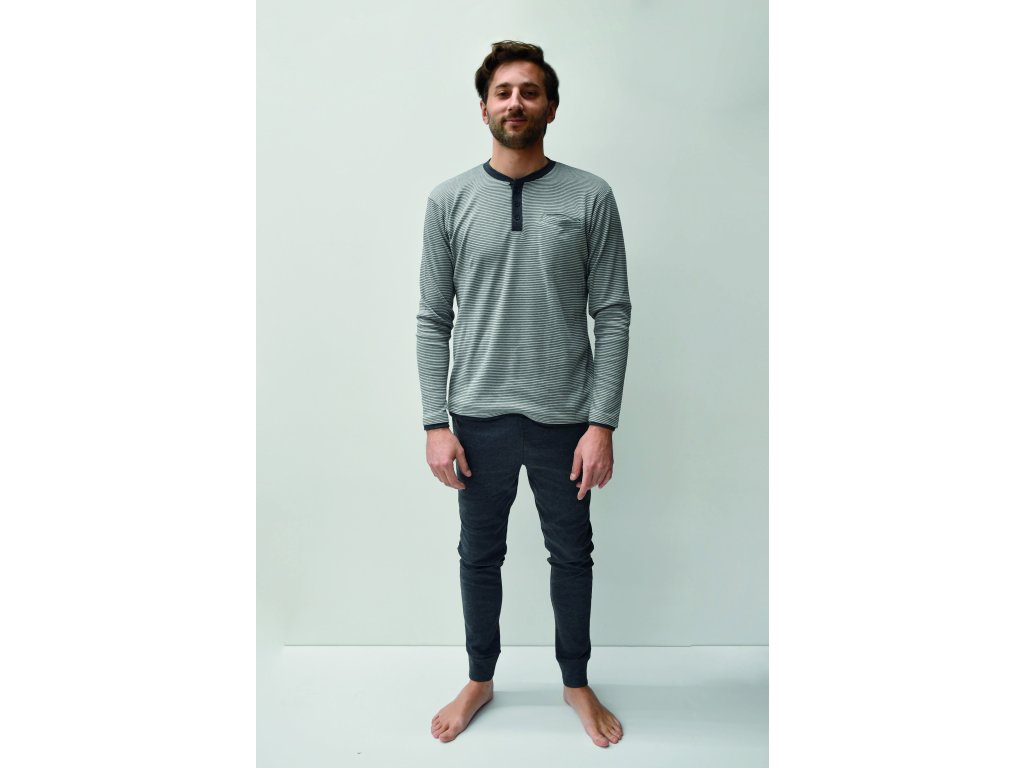 Pánské dlouhé pyžamo s kulatým výstřihem na knoflíky. Kalhoty s pružným pasem.