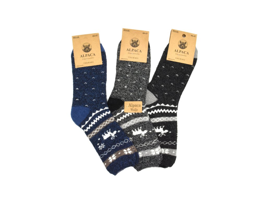 Pánské vlněné ponožky ALPACA se SOBEM 3-pack - tmavě modrá