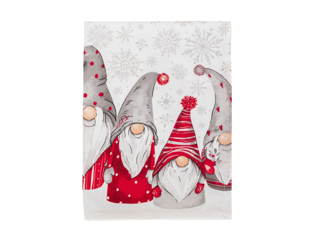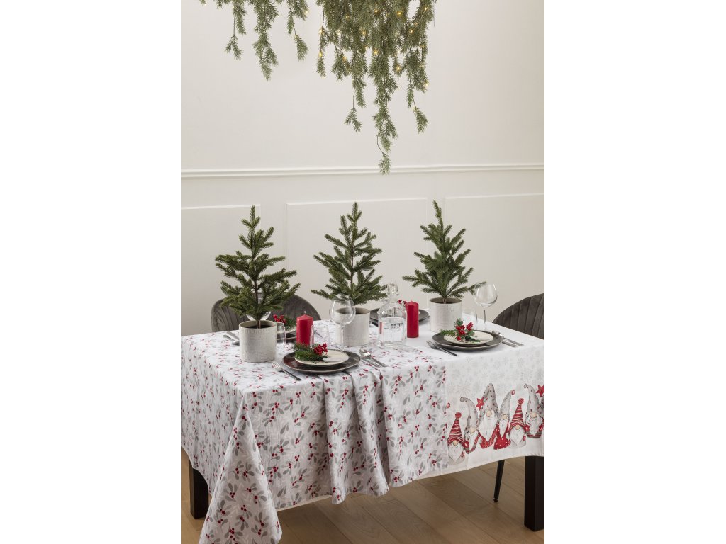 Vytvořte slavnostní vánoční atmosféru s tímto ubrusem s originálním a veselým motivem v odstínech šedé a červené.